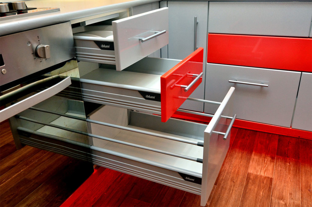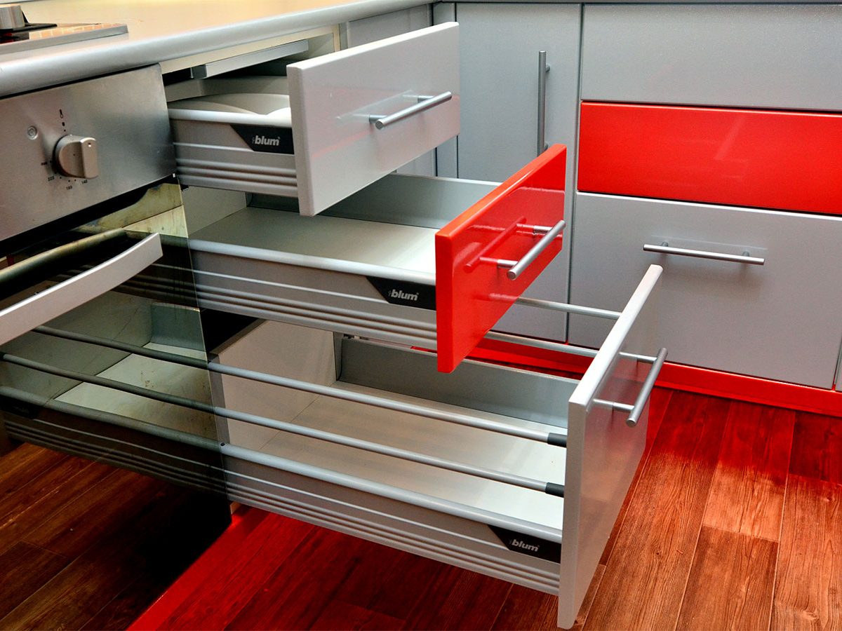 В мебели под заказ мы используем фурнитуру разной ценовой категории, однако только от проверенных и известных мировых производителей: Blum, Hettich, GTV, Rejs, Brass и т.д.