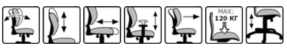 Механизм: перманент-контакт – постоянный контакт спинки кресла со спинкой оказывает поддерживающий эффект в области позвоночника; Механизм регулировки наклона спинки кресла (вперед или назад), регулировка спинки по высоте, регулировка глубины сидения, регулировка подлокотников по высоте; Материал: синтетическая ткань различных цветов, возможно двухцветное исполнение, экокожа; Крестовина: полиамидная опора; Пневмопатрон: механизм регулировки высоты; Ролики: прорезиненные колеса; Максимальная нагрузка: до 120 кг; Производитель: Юнитекс (Россия) Гарантия – 18 месяцев