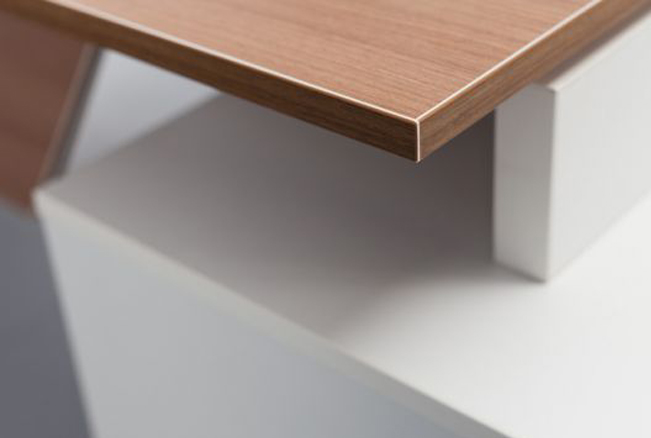 Толщина – Декор “Орех нагаро” – столешницы столов, брифинг-приставок, фасадные элементы тумб и шкафов, экраны столов — 18мм