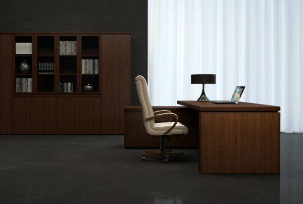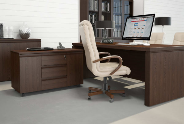 Все фасадные элементы изделий кабинета MARK обложены массивом твердолиственных пород древесины, толщиной 10мм, придающим кабинету более дорогой статусный внешний вид. Данное решение так же позволяет исключить клеевые швы между лицевой пластью детали и ее торцами. Исключение клеевого шва в конструкции деталей позволяет значительно увеличить срок эксплуатации кабинета и защищает его от воздействия внешних факторов.