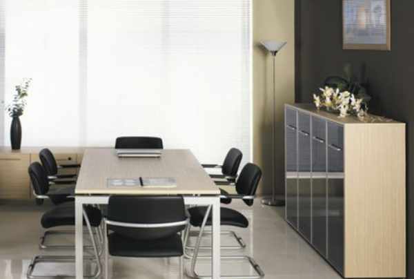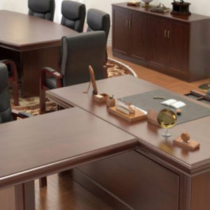 Особенности – L-образная форма брифинг-приставки и одной из опор рабочего стола
