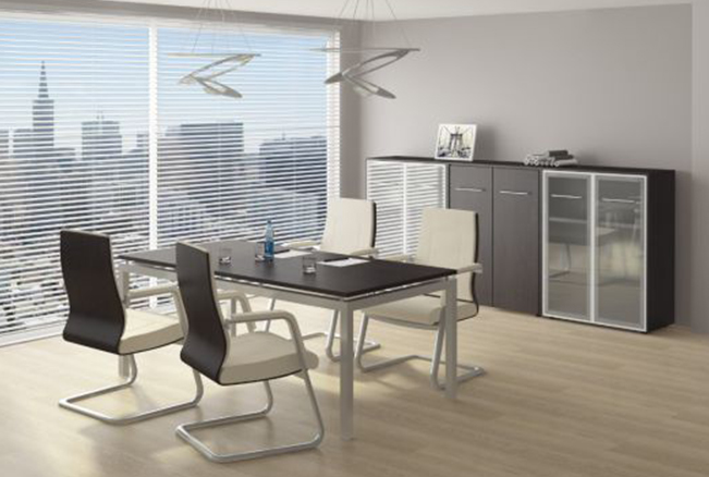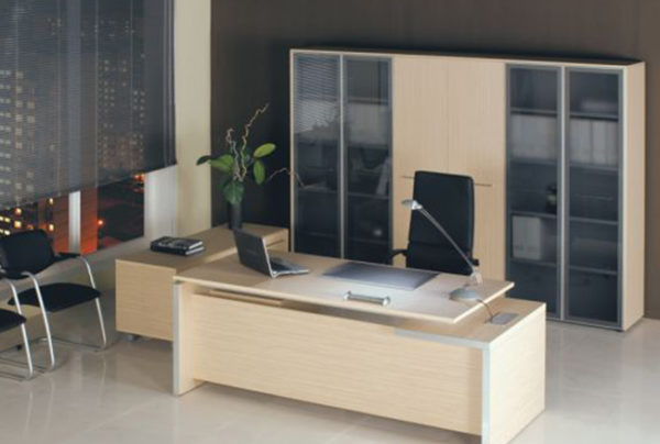 Reventon – это кабинет современного минимализма, для которого важна функциональность. Этот ансамбль наделен несколькими изящными элементами, которые делают его узнаваемым, привлекательным, очень удобным в использовании. Так, например, L-образная конструкция, предназначенная для опоры рабочего стола, и такая же форма брифинг-приставки создают единый, уникальный дизайн конструкции. Кабинет выполнен в очень модном на сегодняшний день оттенке древесины песочный зебрано, который превосходно сочетается с алюминиевыми вставками на кромках опор, фронтальной стороне брифинга.