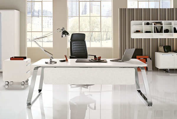 Ножки имеют фиксированную высоту, два варианта ширины: 60 см для приставных элементов и 90 см для столов руководителей. Изготовлены из трубчатых металлических профилей с сечением 70х20 мм и с соединительными углами из сплава с «эффектом наклона». Оснащены ножками, регулируемыми по высоте. Металлические ножки доступны в двух цветах: – Покрашенные эпоксидным напылением в цвете серебристый металлик, хромированные