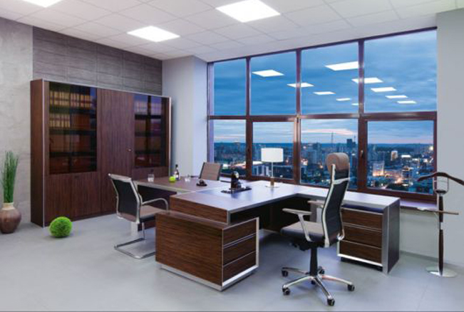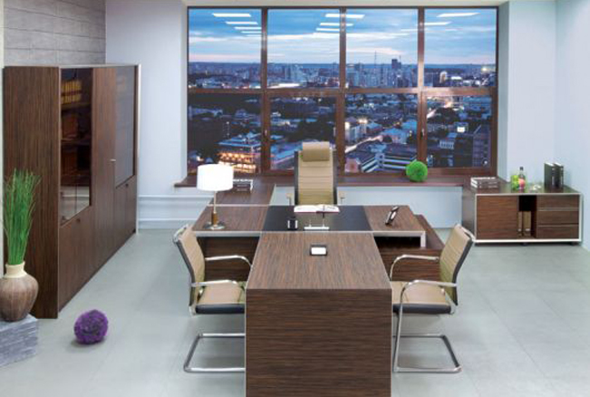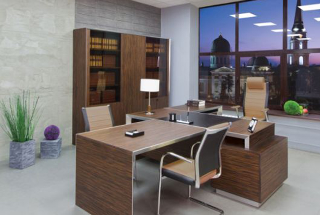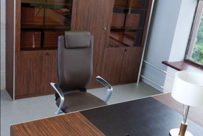 Kабинет V2 – яркий представитель нового поколения современного стиля. Отделка кабинета – высококачественный шпон эбенового дерева с открытыми порами. Металлический каркас столов придает жесткость конструкции. «Визитная карточка» серии – алюминиевый профиль на торцах столах и шкафов, который придает кабинету модный, дорогой вид, подчеркивает благородный оттенок облицовки мебели.