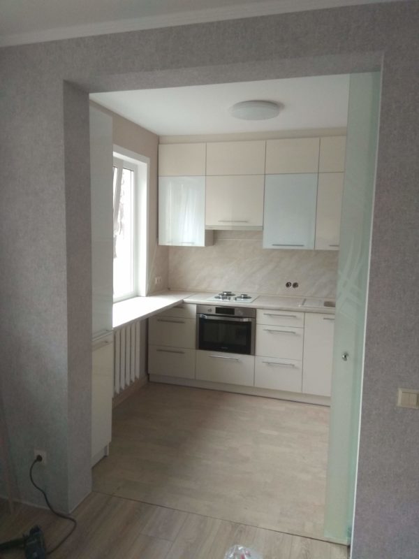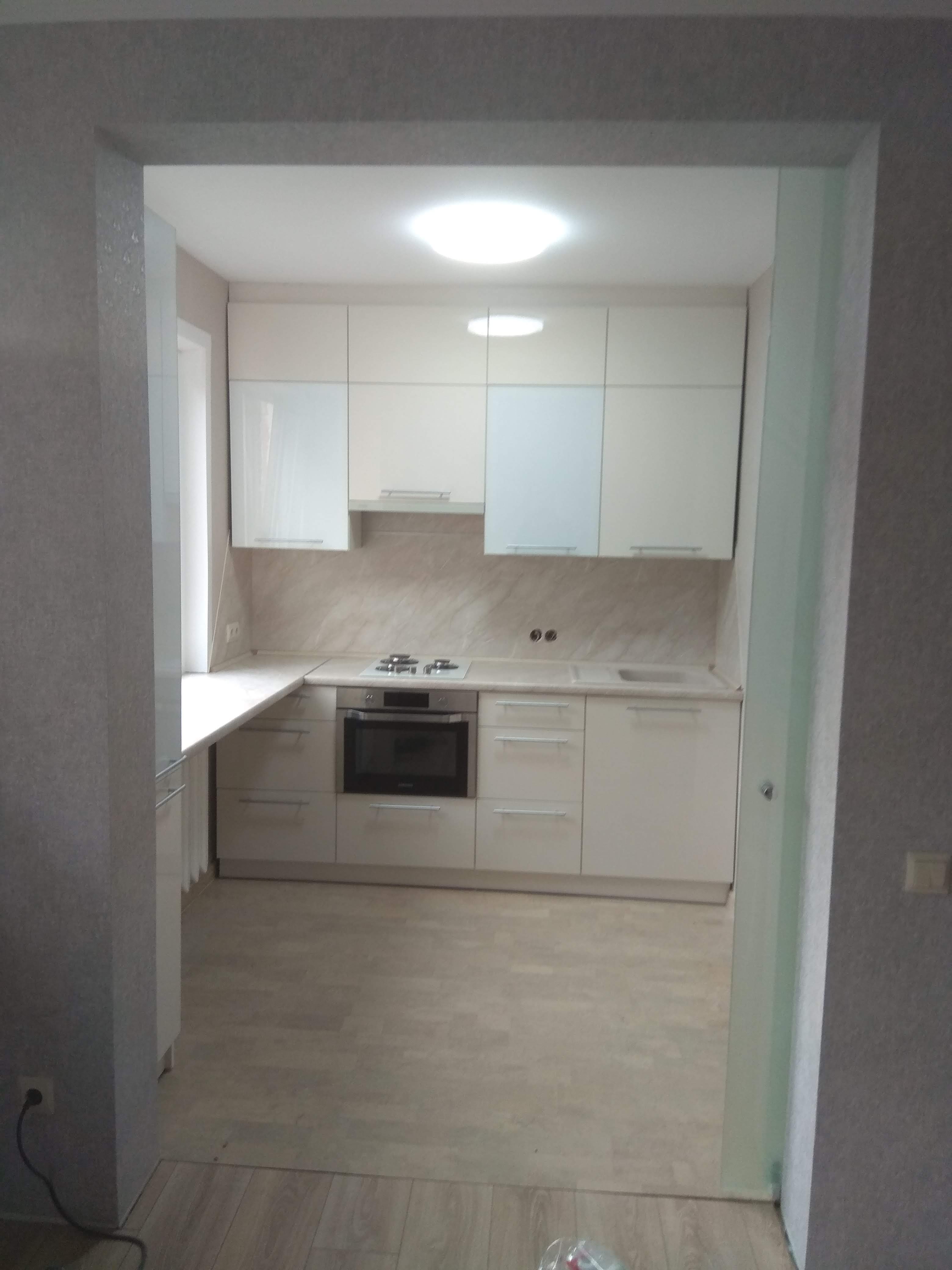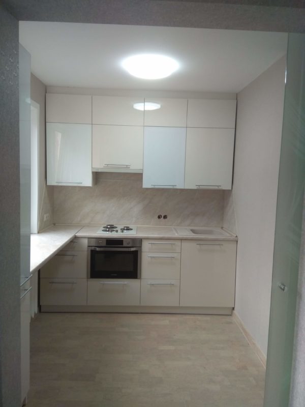 Светлая, легкая и удобная кухня. Подходит для небольших помещений.