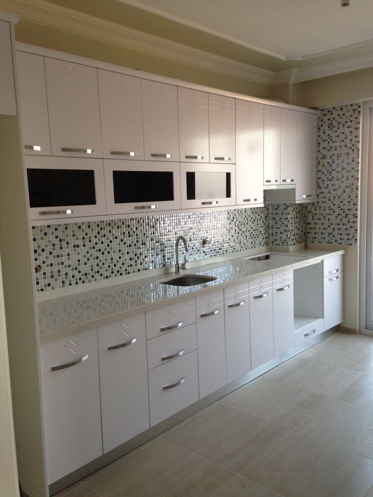 Кухня в светлых тонах с использованием искусственного камня (кварцевый агломерат)