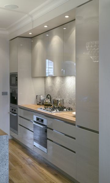 Кухня светлая и современная. Использованы фасады AGT POWER GLOSS панели ( высокий глянец) и алюминиевый профиль GOLA