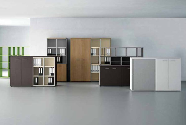 Шкафы, стеллажи – Фасады – ДСтП – 18мм, MDF – 19мм, стекло в тонкой алюминиевой раме, каркасы – ДСтП – 18мм, Полки ДСтП – 25мм