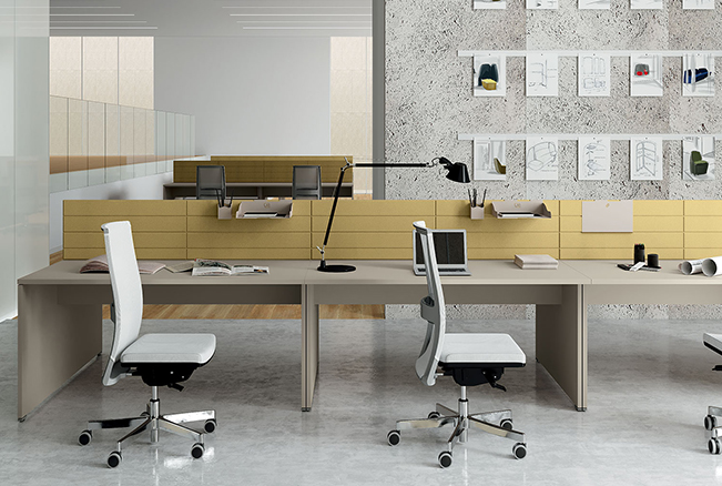 Изготовлены из ДСП толщиной 25 мм, покрыты меламином, доступны в цветах: серебристый, белый, грецкий орех. Панели снабжены боковыми алюминиевыми стойками серебристого цвета и имеют паз для опоры рабочей поверхности или аксессуаров. Верхняя часть имеет профиль, изготовленный из прессованной пленки ПВХ, а также заглушки серого цвета. Регулируемые ножки устанавливаются в нижней части, непосредственно соприкасающейся с полом.
