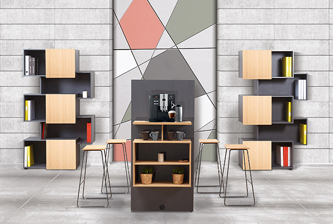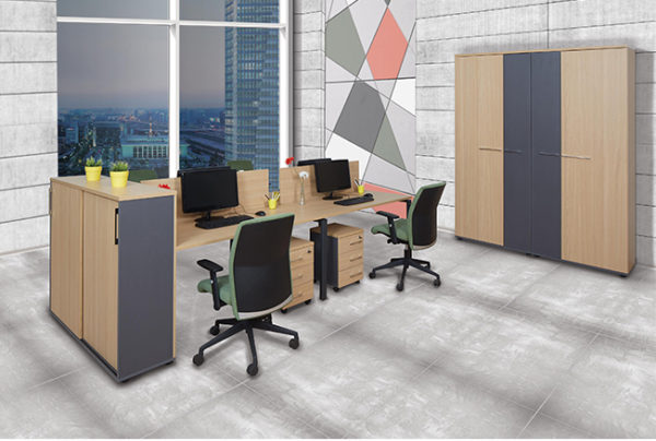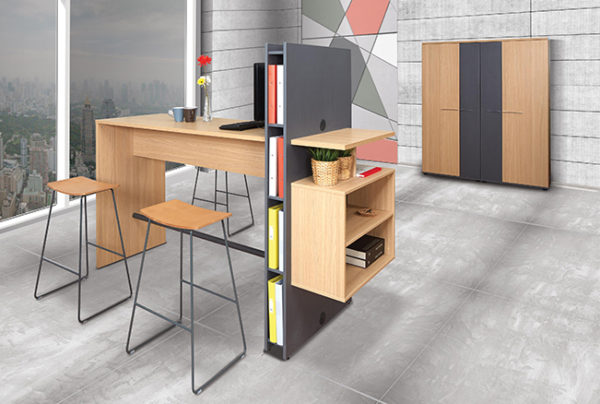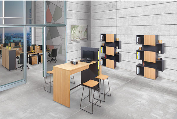 Ассортимент серии UP! охватывает все зоны функционального офиса, создавая комфортную среду для развития бизнеса. Сочетание интересных декоров с антибликовым покрытием, оригинальная конструкция шкафов и стеллажей с ассиметричными дверцами, стол для переговоров, задуманный как барная стойка, располагающий к эффективным и доверительным переговорам. Для улучшения эргономики серии ее крепежные элементы по совместительству также являются и кабель каналами.
